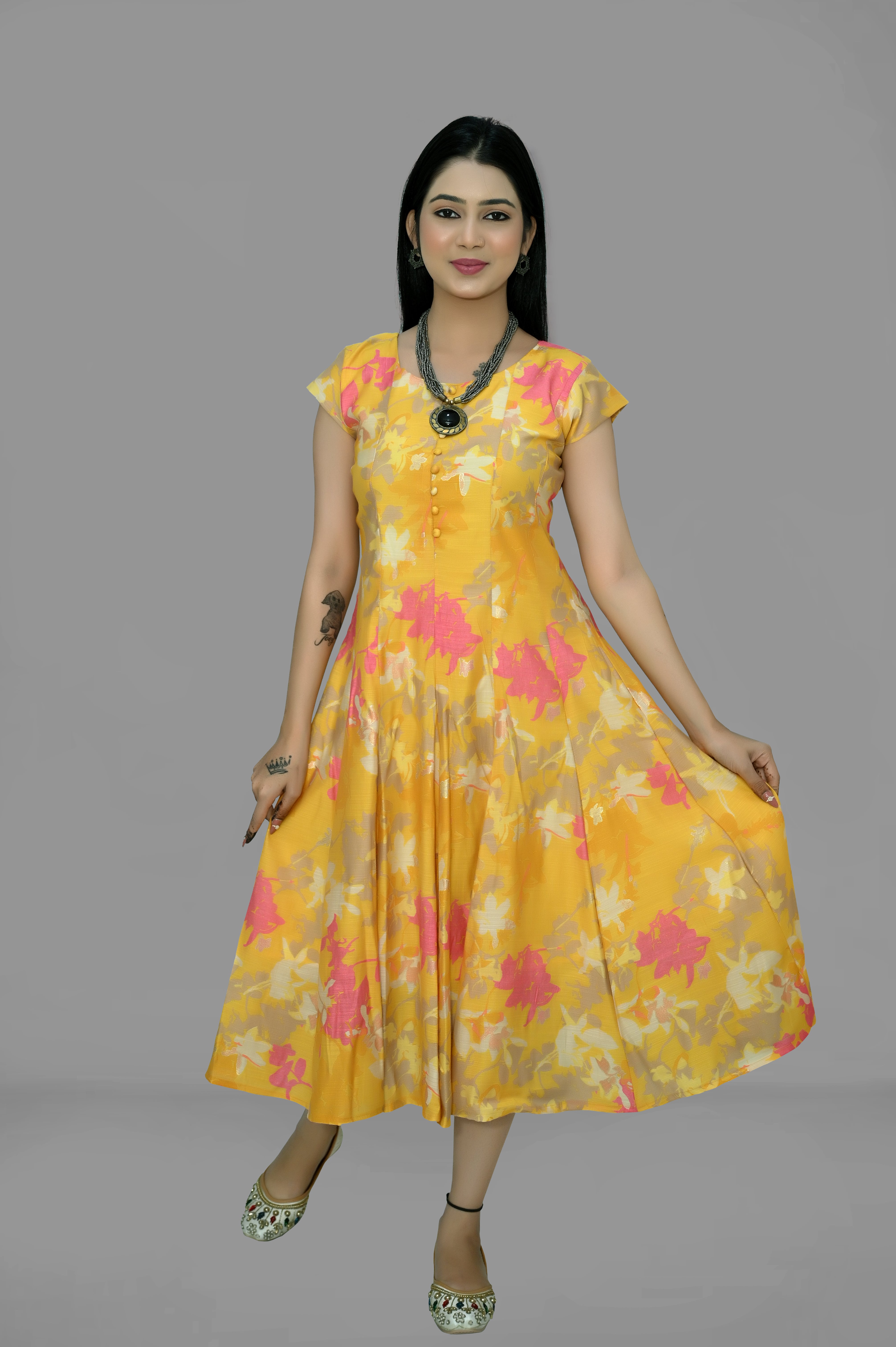Enhance your wardrobe with this stylish 10 kali from the shoulder, short sleeves, boat neck. in a vibrant Yellow color. Perfect for any occasion, this versatile piece is made with high-quality rayon fabric for comfort and durability. Features include detailed pleating and a flattering fit for all body types.