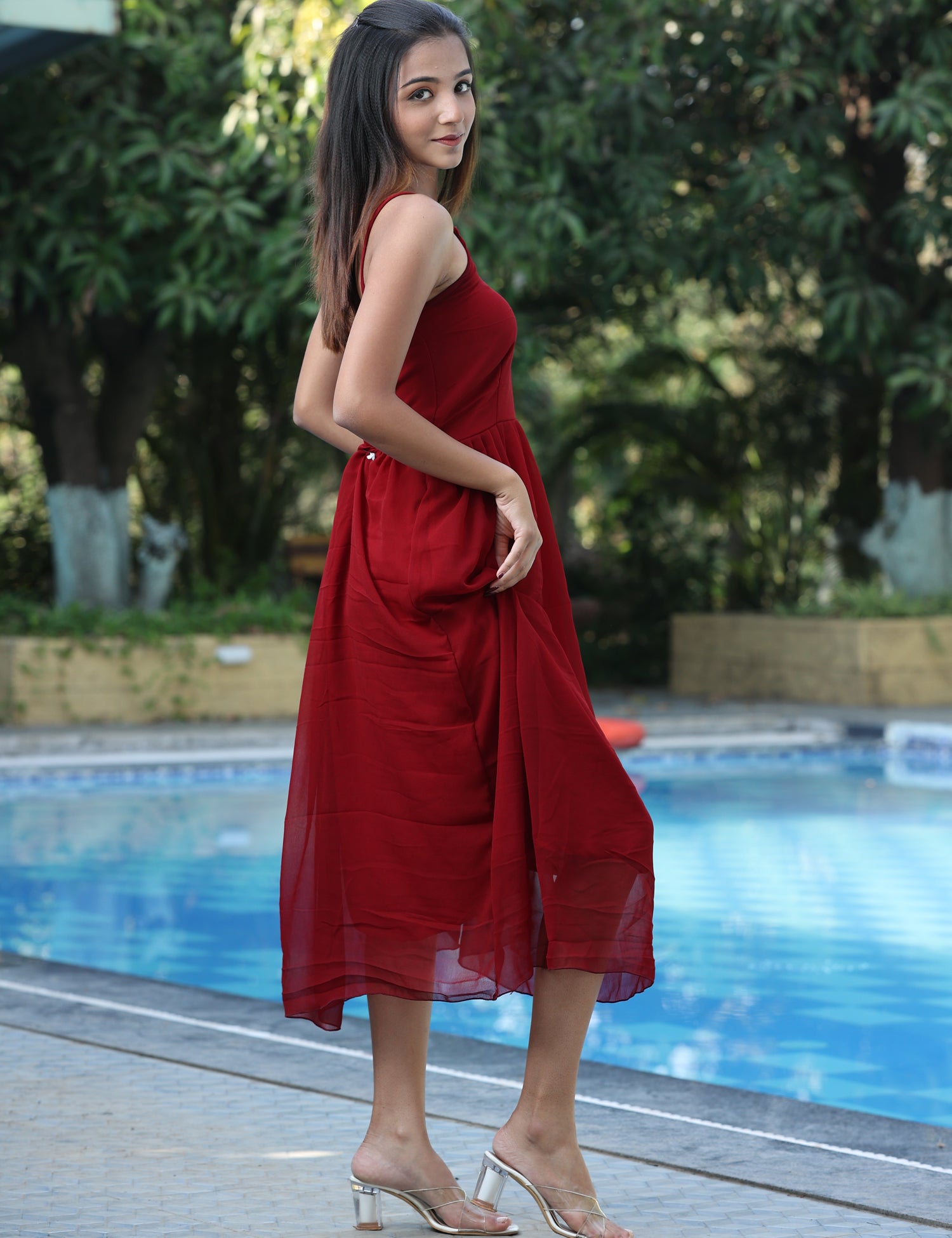 Brick Red coloured two’ strap shoulder