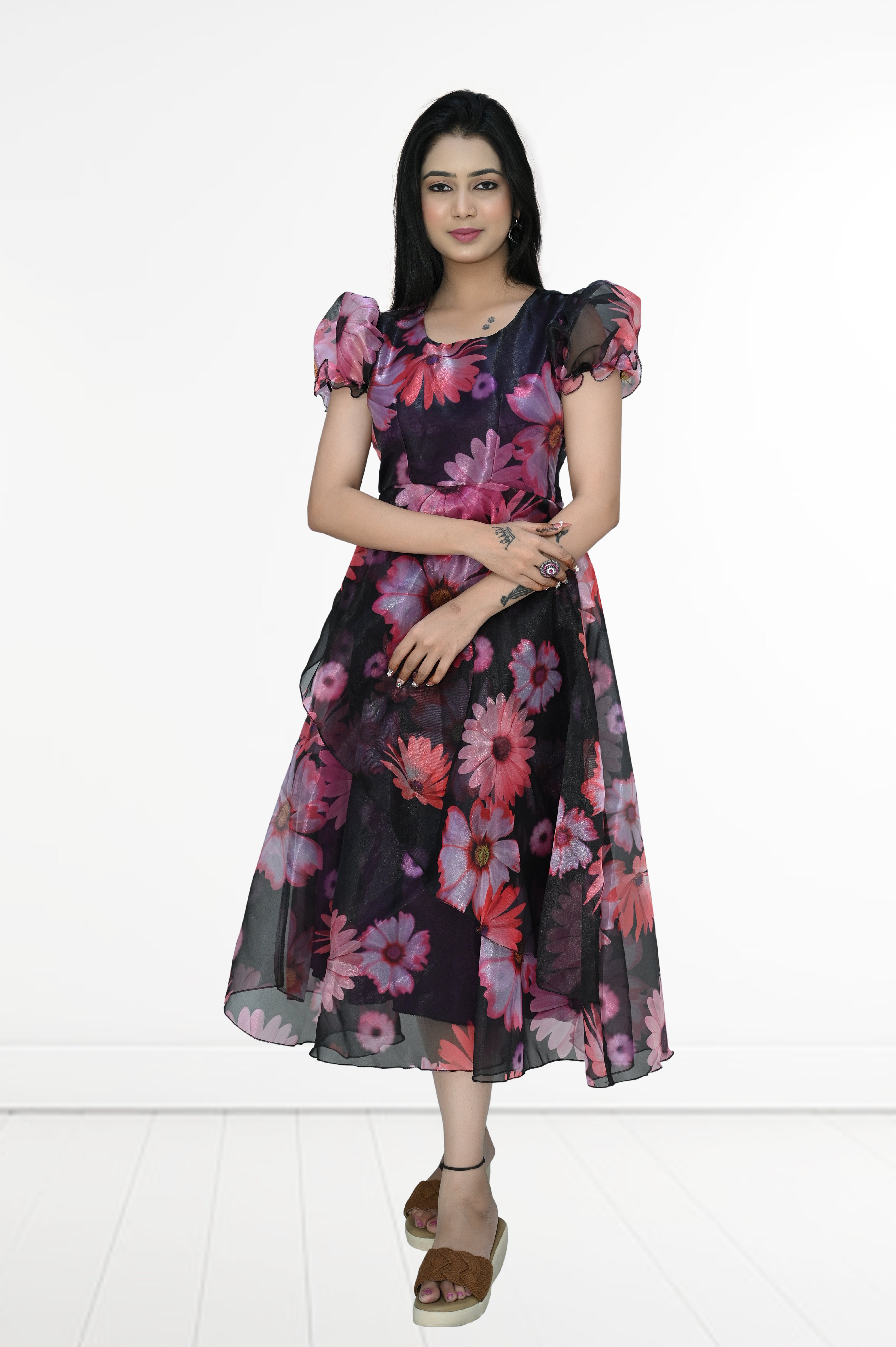 Enhance your wardrobe with this stylish round neck, puff sleeves, flair dress (Indo western) in a vibrant Black color. Perfect for any occasion, this versatile piece is made with high-quality rayon fabric for comfort and durability. Features include detailed pleating and a flattering fit for all body types.
