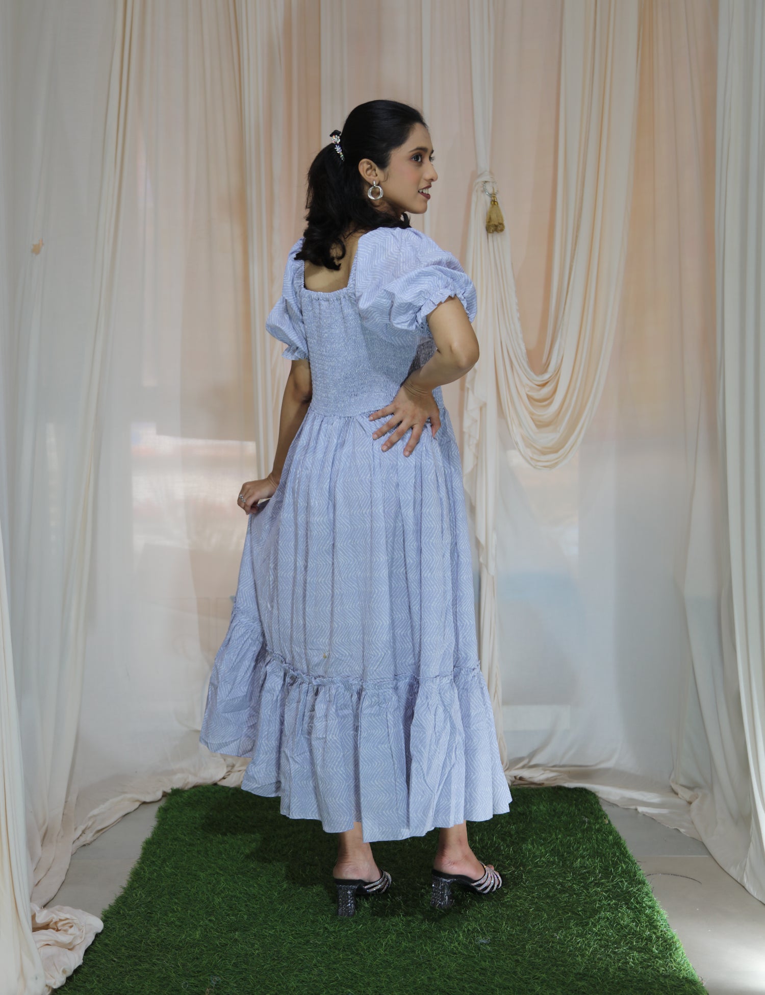 Pigeon coloured Ballon Sleeves, Smoking neck.